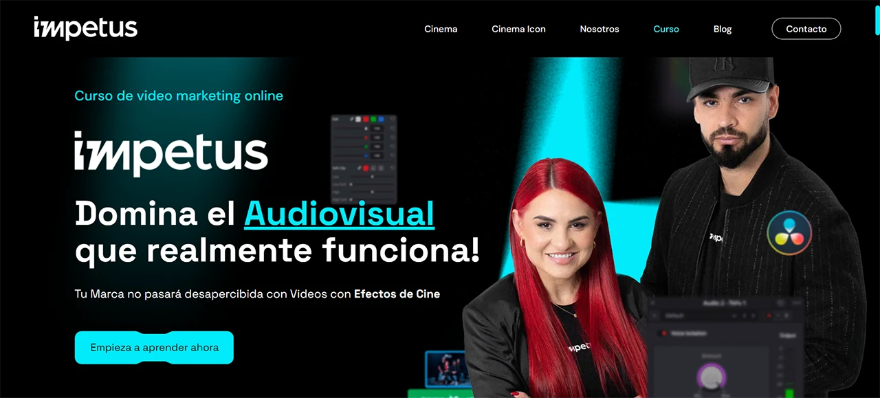 También necesitaba integrar una landing page existente donde promociona su curso online de edición audiovisual.