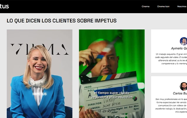 Rosario Rodríguez, CEO de “By Impetus” necesitaba una página web rápida, moderna y visualmente impactante para posicionar con fuerza sus dos servicios principales de producción audiovisual de lujo que convierte espectadores en clientes.